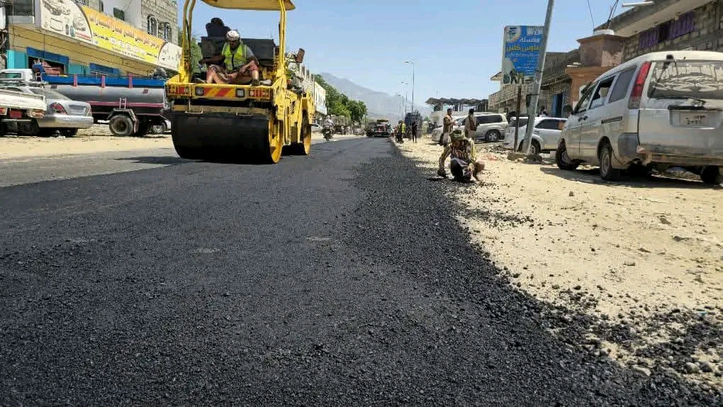 سفلتة سوق مودية تتواصل ضمن مشروع تأهيل خط أبين الدولي