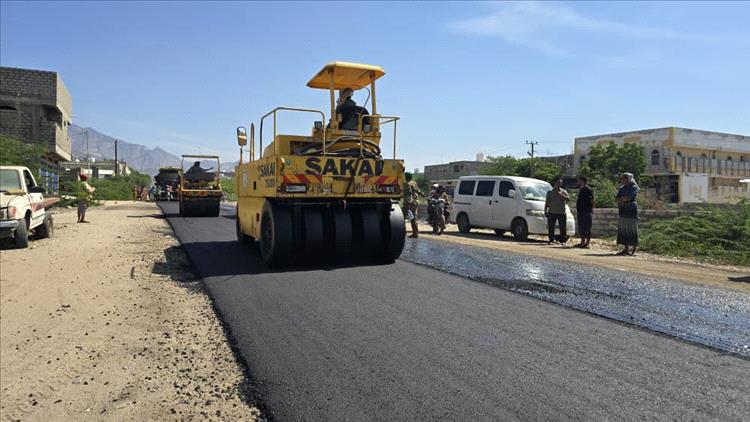 سفلتة سوق مودية تتواصل ضمن المرحلة الثانية لمشروع تأهيل خط أبين الدولي