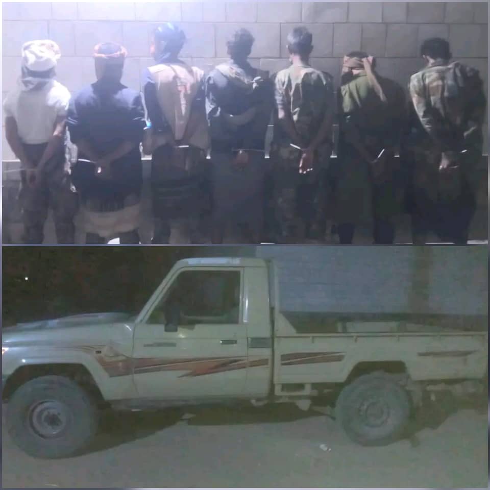 وبناء على ذلك، تحرك مدير عام أمن أبين العميد/ علي ناصر بوزيد بقوة أمنية إلى مديرية لودر – منطقة أمعين، للقبض على النقيب/ أبو قحطان، حيث تمت مداهمته واعتقاله مع خمسة من أفراده والاستيلاء على طقمين كان يستخدمهما في ابتزاز المارة، وتم نقلهم جميعاً إلى السجن المركزي بمحافظة أبين لاستكمال التحقيقات والإجراءات القانونية ورفع ملفهم إلى القضاء.